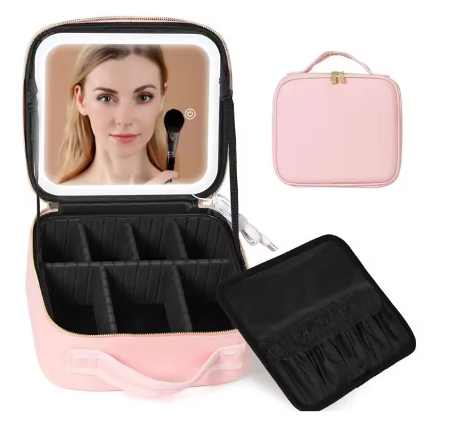 Travel Makeup Bag With LED Lighted Mirror, Makeup Train Case With Adjustable Dividers